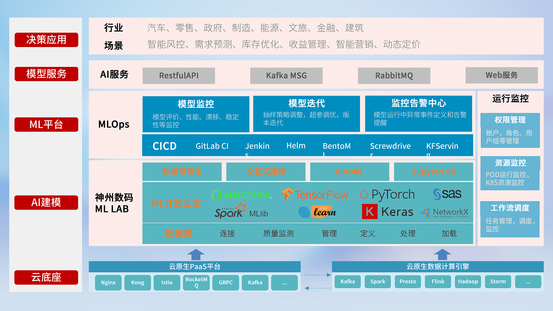 数据+模型双引擎驱动,,,面向智能服务场景,,,,快速灵活利用AI技术,,,,支持业务决策,,,助力企业智能化转型破局。。。